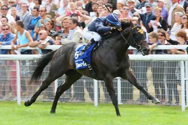Il y a neuf ans, une bombe américaine nommée No Nay Never (Scat Daddy) avait fait pleurer l’entourage de Vorda (Orpen) en mettant fin à l’invincibilité de la pouliche française dans le Prix Morny. Ce 2 ans d’exception s’est transformé en l’un des étalons les plus prisés de Coolmore, lui qui officie à 125.000 € depuis deux saisons. Cet après-midi, son fils Blackbeard lui a rendu le plus beau des hommages en s’imposant à son tour dans un Morny déserté par les français, clôturant en beauté un week-end de folie pour l’actuel Leading Sire des pères de 2 ans en Europe, auteur d’un coup de deux au niveau Groupe hier au Curragh, grâce à Aesops’s Fables et Meditate, respectivement lauréats des Futurity Stakes (Gr.2) et des Debutante Stakes (Gr.2) ! Parti aux avant-postes le long du rail, le pensionnaire d’Aidan O’Brien a animé l’épreuve en compagnie de la seule femelle au départ, Manhattan Jungle (Bungle Inthejungle). Cette dernière a commencé à reculer à 300 m du but au contraire de Persian Force (Mehmas), qui est venu comme un bolide sous la poigne de Frankie Dettori. Mais Blackbeard a montré qui était le patron en se relançant de plus belle et a dominé le protégé de Richard Hannon plus facilement que ne l’indique l’écart à l’arrivée (une demi-longueur), tandis que son compagnon de boxes The Antarctic (Dark Angel) s’est hissé sur la dernière marche du podium.