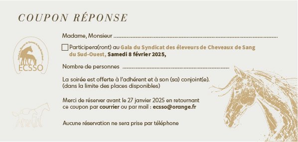 Le Président Louis Lafitte, et toute l'équipe de l'ECSSO (Syndicat des Éleveurs de Chevaux de Sang du Sud-Ouest), ont le plaisir de vous inviter à une rencontre amicale le dimanche 21 juillet...