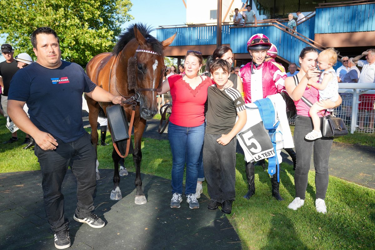 Si l'Omnium à 12.5% est tombé dans l'escarcelle de France Anglo'Jac (Paban de France), pour l'entraînement de Kevin Tavares et la casaque de Jean-Marie Lapoujade, le vendredi 27 juin dernier, sur l'hippodrome de La Teste-Bassin d'Arcachon, celui réservé aux Anglo-Arabes à 37.5% a été remporté par Halandjila (Olzarte de Collongues), pour le plus grand bonheur de son permis d'entraîner, Pierre-Yves Massoubre, maréchal-ferrant de profession, installé du côté de Pau, dans les Pyrénées-Atlantiques. Sous la selle d'Antoine Werlé, qui était aussi le partenaire de France Anglo'Jac dans l'Omnium à 12.5% d'ailleurs, Halandjila a longtemps évolué au sein du peloton, avant de bien accélérer en pleine piste sitôt l'entrée de la dernière ligne droite, puis de venir créer la décision dans les 100 derniers mètres du parcours. Jakarta Trois (Frisson du Pecos) a terminé sur la deuxième marche du podium, une encolure seulement derrière la lauréate, et son compagnon d'entraînement Harry de la Brunie (Gnome) sur la troisième, également une encolure plus en retrait.