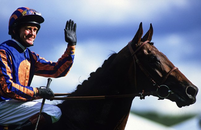 Montjeu avec Mick Kinane après sa victoire dans le Prix de l'Arc de Triomphe.
