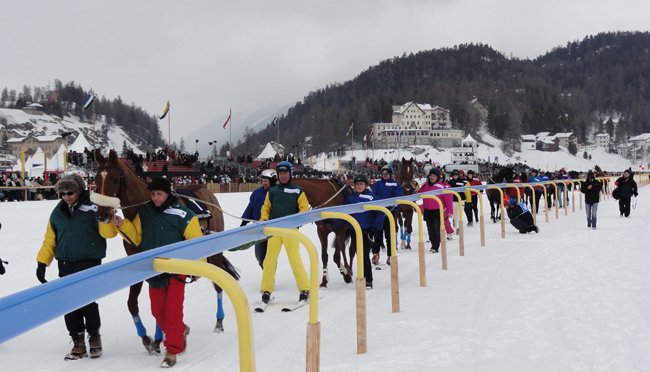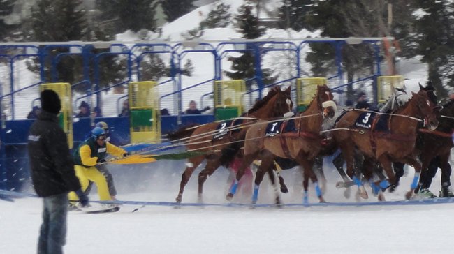 Et comme impossible n'est pas suisse, les organisateurs ont ajouté aux disciplines classiques du galop et du trot, où les roues des sulkies sont remplacées par des patins, un sport qui mélange les 2 extrêmes inconciables, le pur-sang et le ski alpin. Ainsi, si les skieurs tractés par des chevaux et poneys de trait sont bien connus en Scandinavie, l'adaptation aux courses de galop à Saint-Moritz est tout simplement unique au monde. Ne restait plus qu'à faire venir et stationner les chevaux de courses dans la station d'Engadine, dont l'accès par la route est tout de même fastidieux. Mais avec de l'argent tout s'arrange.