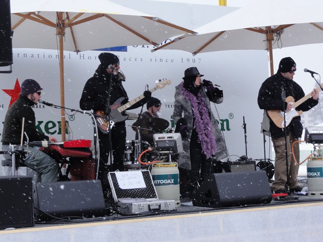 Les musiciens se réchauffent avec des bouteilles de gaz !