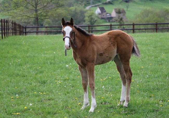 Cette année, Eric a encore eu l'oeil en achetant à la vente de février une certaine Salamon pour 56 000 euros. Cette fille de Montjeu, nièce d'Alpine Rose et Fragrant Mix, était alors pleine de Le Havre, et quelques semaines plus tard, son fils Montabot a brillé dès ses débuts à Longchamp...Lui aussi issu de Le Havre, il aura donc un propre frère ou soeur dans les jours à venir...En attendant, on vous présente 3 femelles nées cette année, dont une très jolie nièce de Pomellato.