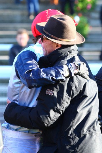 David Cottin peut laisser éclater sa joie après sa victoire dans le Prix Renaud du Vivier (Gr.1)
