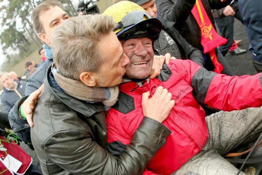 C'est le moment où la joie éclate après un stress légitime. Pierre Pilarski, le propriétaire peut embrasser chaleureusement son pilote.
