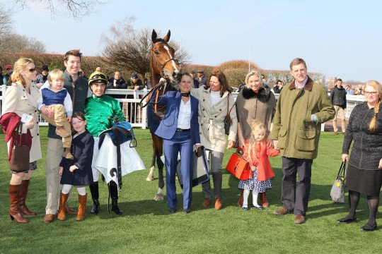 Daupin de Childa, avec Roxanne, en 2013, Pia Brandt et Maxime Guyon peuvent poser pour la photo du Prix Rose de Mai (L) 2016; avec l'entourage de l'invaincue Camprock.