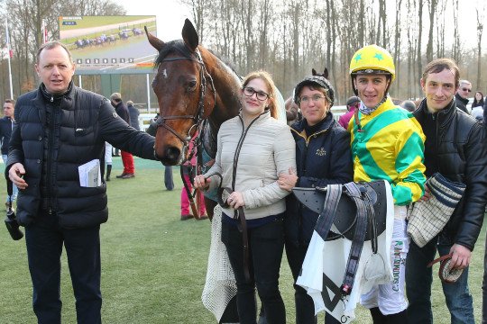 Le 3ème succès en 4 montes, en ce jour de st Valentin pour Christophe Soumillon & Melissa Jane. Ils s'imposent pour l'entraînement de M.Henri Spiller - Cette pensionnaire a été réclamée suite à cette sortie