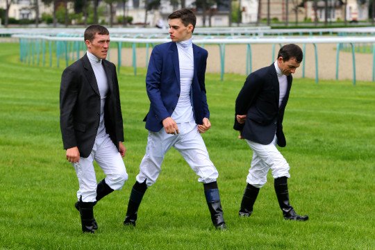 Quelques Jockeys font une reconnaissance de la piste