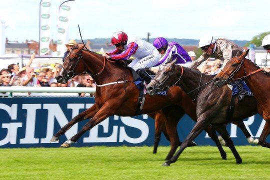 PJ McDonard célèbre sa victoire. 3 ans après son compatriote John Gosden, les couleurs anglaises s'imposent cette année.