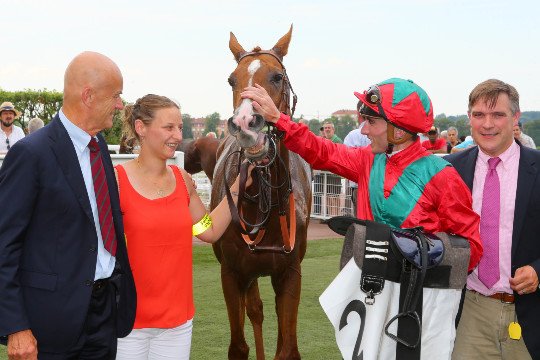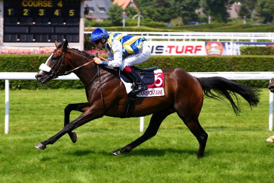 Walgeist, désigné vainqueur après photo par le plus court des nez. Le fils de Galileo, monté par Pierre-Charles Boudot, aligne sa 3e victoire consécutive cette année.
