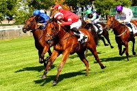 Henk Grewe qui réalise un beau meeting Deauvillais, signe une nouvelle victoire grâce à Santurin