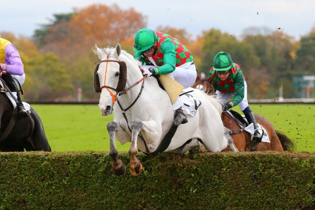 Un autre gris quasi blanc, Celtior (Racinger), samedi, à Auteuil. Il a permit à Mathéo Viel de faire sa rentrée, après pratiquement 3 mois sur le banc, suite à sa blessure aux vertèbres.