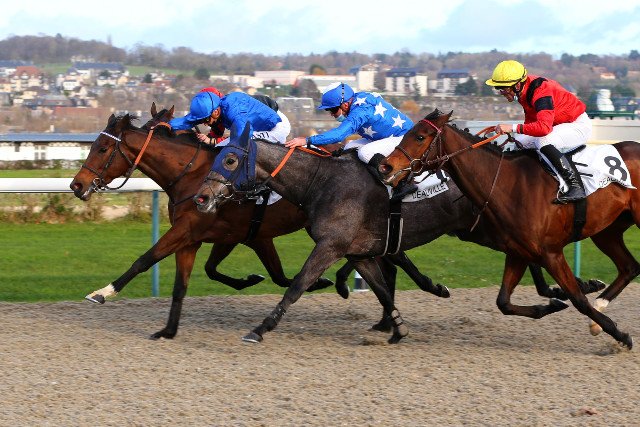 Victoire serrée pour la dernière Listed de l'année, le Prix Miss Satamixa tombe dans l'escarcelle d'Alpen Rose (Sea the Stars), casaque Godolphin, à la corde, entraînée par Henri-Alex Pantall