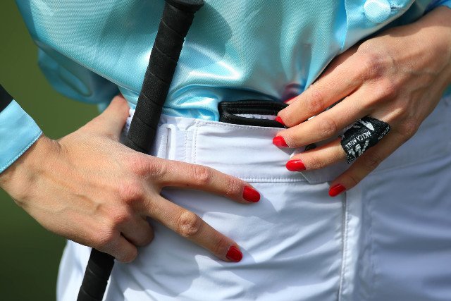 Lundi à Chantilly : changement de style, pas de gants blancs, mais de jolis ongles rouges appartenant à Mickaëlle Michel
