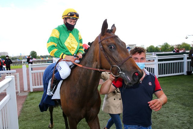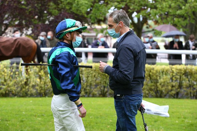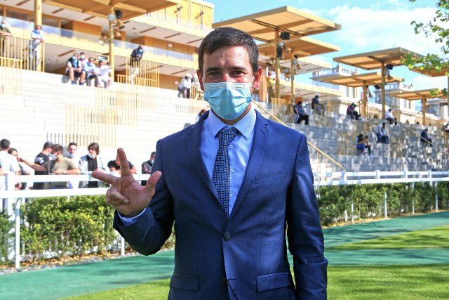 Dimanche à Longchamp: Jérome Reynier, on l'imagine tout sourire derrière son masque, lui réalise une journée exceptionnelle avec un triplé pour la casaque Seroul avec deux groupes à la clé.