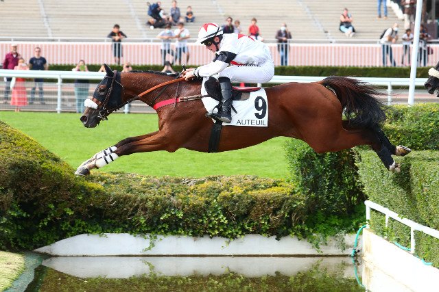 Samedi à Auteuil : magnifique saut de la rivière des tribunes pour Drop Flight (Martaline), gagnante du Violon II (Listed)