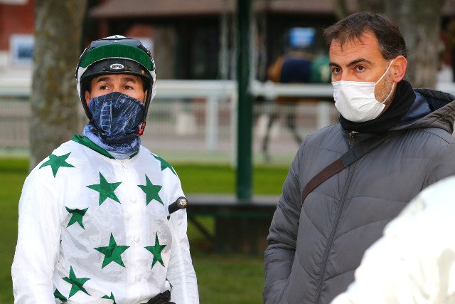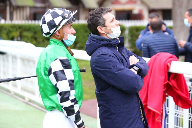 Jeudi à Deauville : Théo Bachelot en compagnie de Florent Guy, le gentleman-rider le plus titré (plus de 400 victoires)