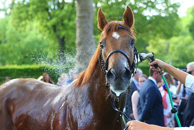 Samedi à Auteuil : Eden Bleu passant sous les brumisateurs après son succès