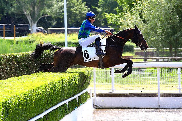 Samedi à Auteuil : Tristan Lemagnen et Eclipse Bleue au saut de la spectaculaire rivière des tribunes.