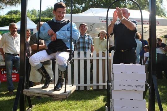 Matthieu Autier sur la balance pour son poids en fromage