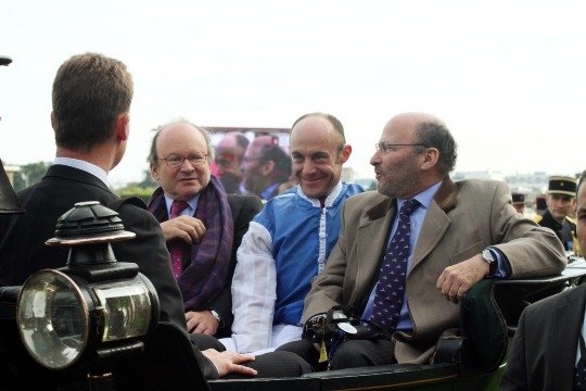 Une bonne accolade d'Olivier Peslier envers son 2ème patron, le Cheik Abdullah Al Thani .