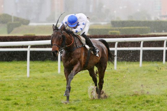 Mathieu Delage et Roi Ken sur la piste très humide de Pau