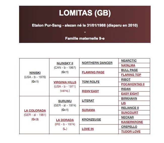 C’est pourtant sur ce site qu’il fit naître en 1974 le vainqueur du Deutsches Derby (Gr.1) Surumu, un Chef de Race dont la fille La Colorada, Championne de sa génération à 2 ans, donnera le jour le 31 janvier 1988 à un fils du stayer Niniski: Lomitas, future star de sa génération.
