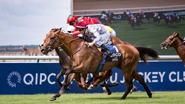 Brametot et Cristian Demuro lors de leur victoire dans le Prix du Jockey-Club