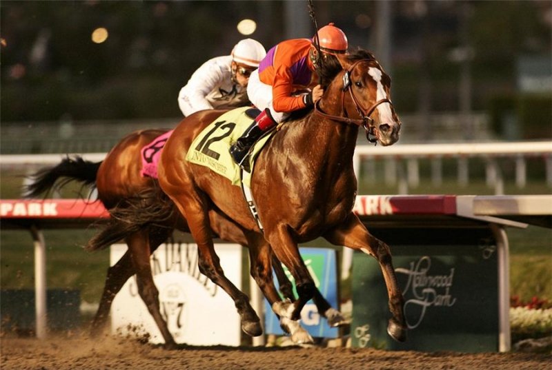 Into Mischief lors de sa victoire dans les Futurity Stakes (Gr.1), monté par Victor Espinoza.