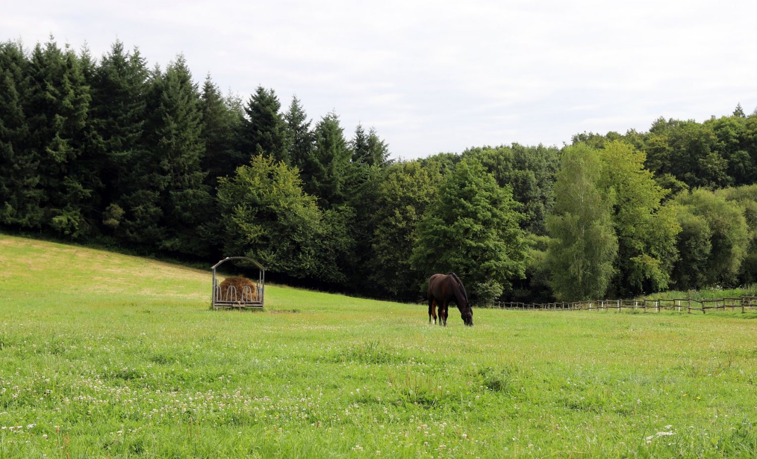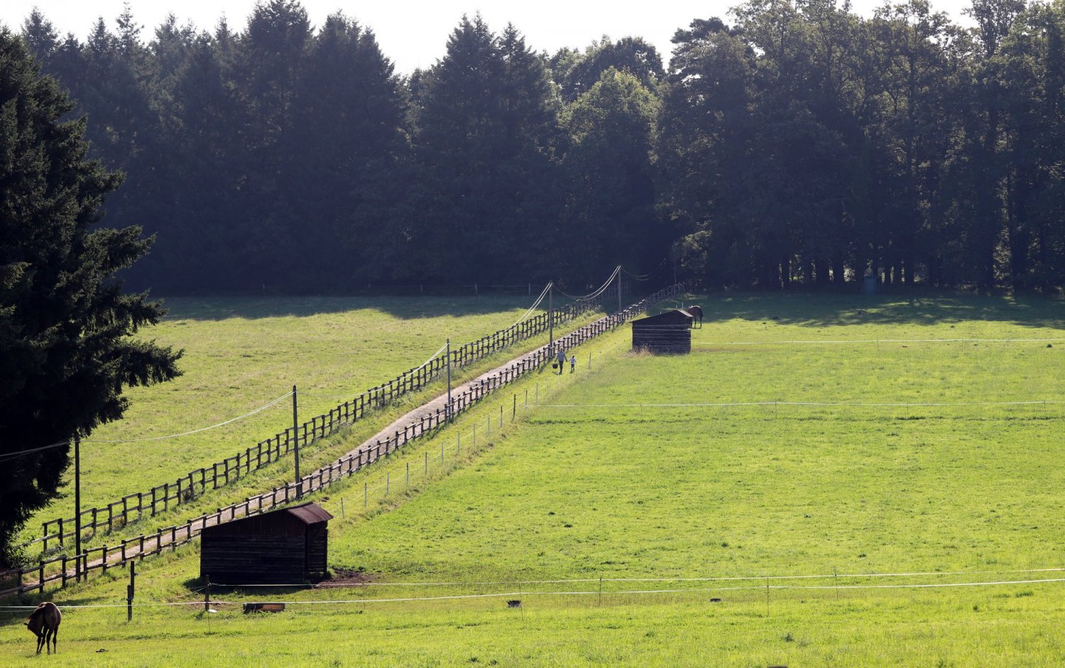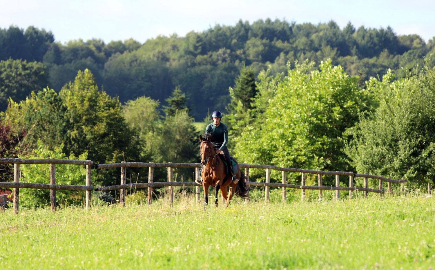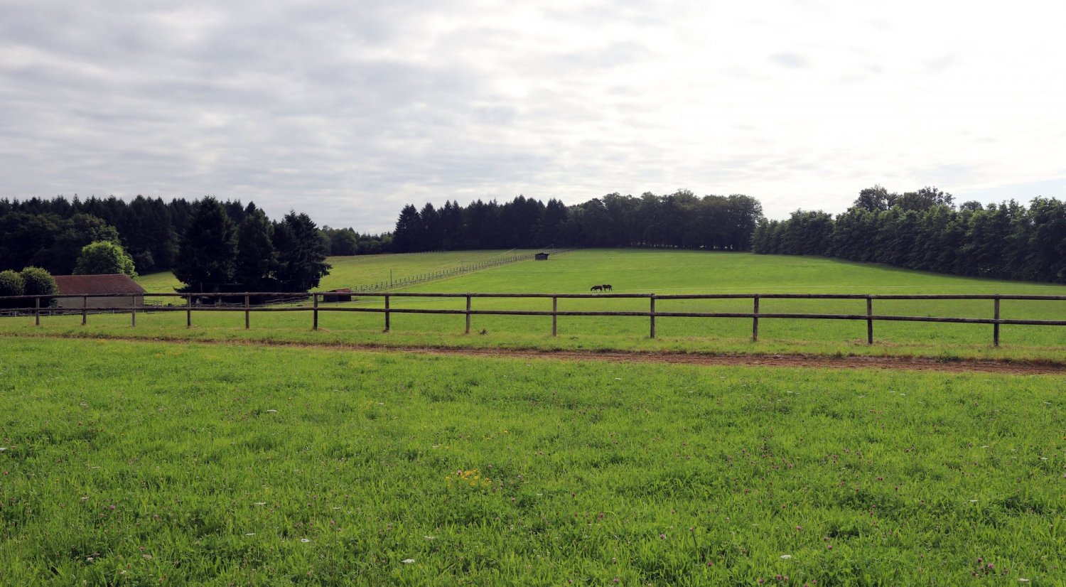30 hectares: 12 hecatres de forêt, 18 hectares de prairie + allées cavalières