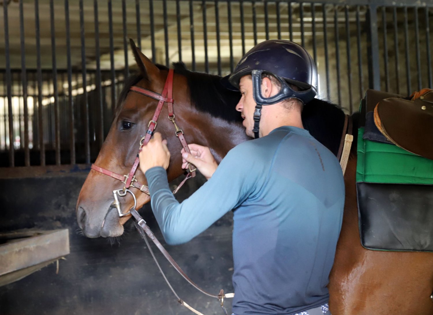 Issu du concours hippique, et après une expérience de cavalier d'entraînement/garçon de voyage réalisée chez François Nicolle, Rémy Anne s'est lancé à son compte en 2019 en tant que débourreur/pré-entraîneur, au sein du Haras des Places de Marie-Pierre Lejeune, à Saint-Just-Le-Martel (Haute-Vienne). Découvrez ou redécouvrez en photos ce à quoi ressemble une matinée de travail chez ce dernier. Par Juliano Denion.