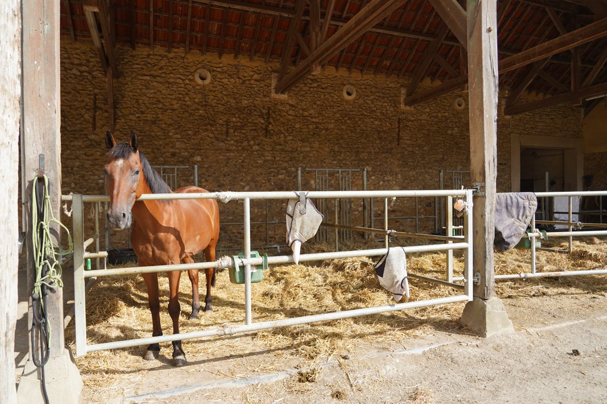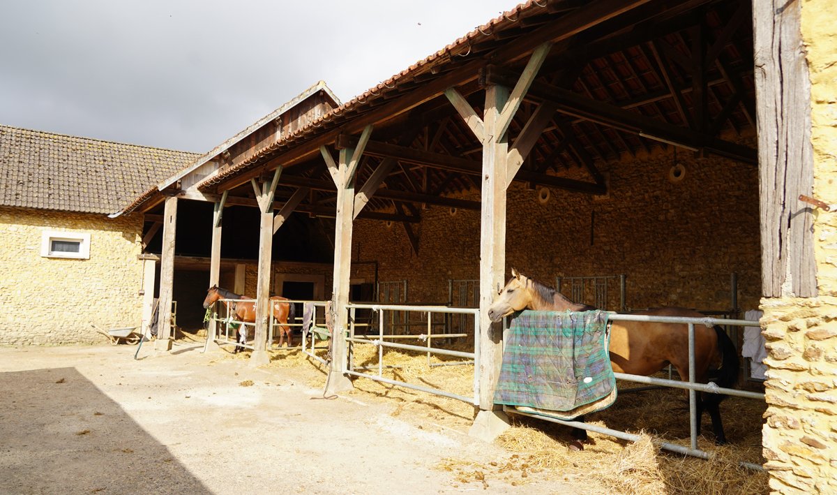 Arthur Marx s'est installé dans la vaste batis réamenagé d'une ferme qui exploite plus de 600 hectares de culture, préalablement doté d'installations équestres, et très facile d'accès, à 10 minutes de la sortie d'autoroute A11. Il y a transformé les granges ouvertes en 18 boxes, ou plutôt stabulations étant donné les dimensions. Il bénéficie déjà d'un manège couvert de 45mx25m, d'une carrière de 50mx70m d'un rond de long de 30 m de diamètre, d'un marcheur 4 places de 14 m de diamètre. A noter qu'il a aussi accès à une 15aine de paddocks.