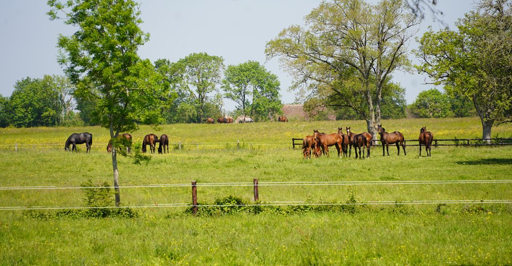 En chiffres, le Domaine de l’Etang s’étend 200 hectares réservés où cohabitent les chevaux, les bovins et les cultures de blés, paille, avoine, orge, maïs, etc... D'ailleurs, le haras est entièrement autonome en terme de fourrage mais aussi d'alimentation.