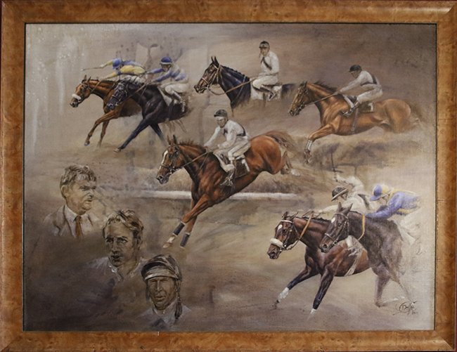 • Peinture de Claudia Duffé représentant nombre de vainqueurs de Jean Hardy