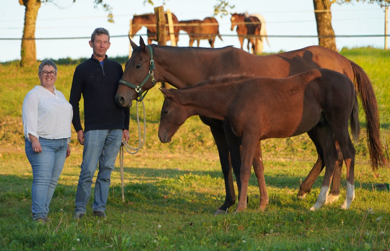 Passionné de chevaux depuis son enfance, Gilles s'est lancé dans l'élevage il y a 20 ans lorsqu'il s'est installé à Saint-Laurent-sur-Oust. Depuis de nombreuses années il effectue les poulinages et s'occupe à l'année de dizaines de juments appartenant à des clients bretons ainsi que parisiens. Accompagné par sa femme, ainsi que par une employée, Gilles veille sur plus d'une trentaine de chevaux occupent actuellement les 60 hectares, dont certains sont alloués à la production de paille et de foin.
