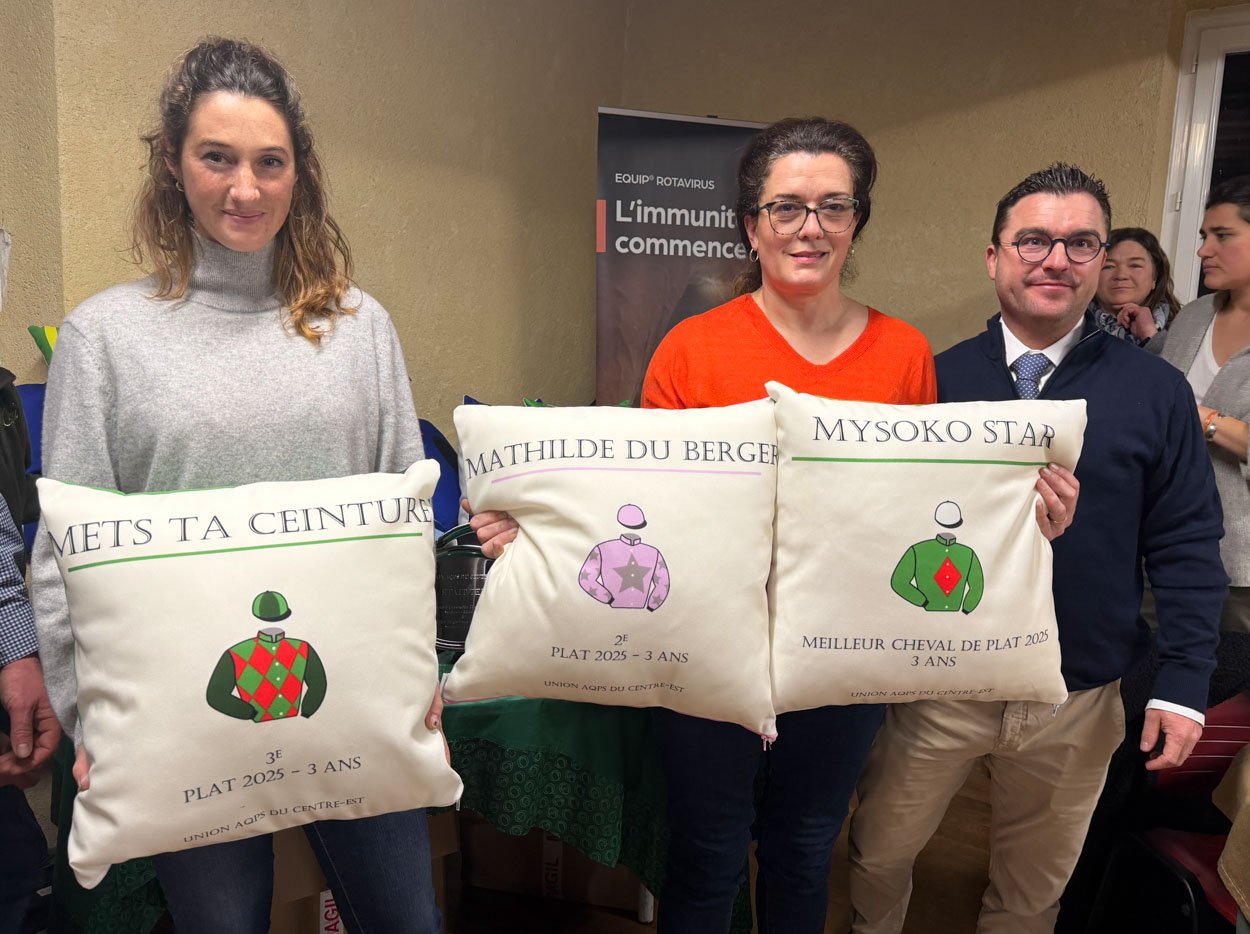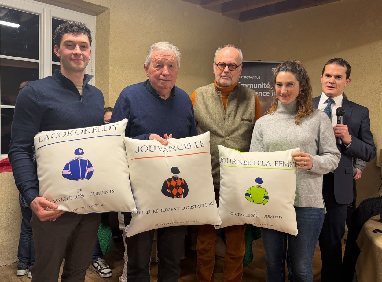 Sacré cheval d'or des éleveurs pour la 7e fois consécutive, et rival principal de la famille Papot chez les propriétaires, le Haras de Saint-Voir dans l'Allier est le principal acteur de l'obstacle français. Développé depuis 4 décennies par Nicolas de Lageneste, et repris aujourd'hui par sa fille Justine, ce vaste domaine de 220 hectares qui appartient à la famille depuis 6 générations comporte non seulement un haras d'élevage mais aussi un centre d'entrainement et une écurie de débourrage. S'il n'y a pas neigé comme dans l'ouest, le froid polaire de début janvier a blanchi tout l'environnement, ce qui n'empêche pas le travail sur la piste en fibre de plastique, ainsi que la 1ère naissance de l'année ! VOIR LA GRANDE GALERIE PHOTOS d'une matinée à Saint-Voir.