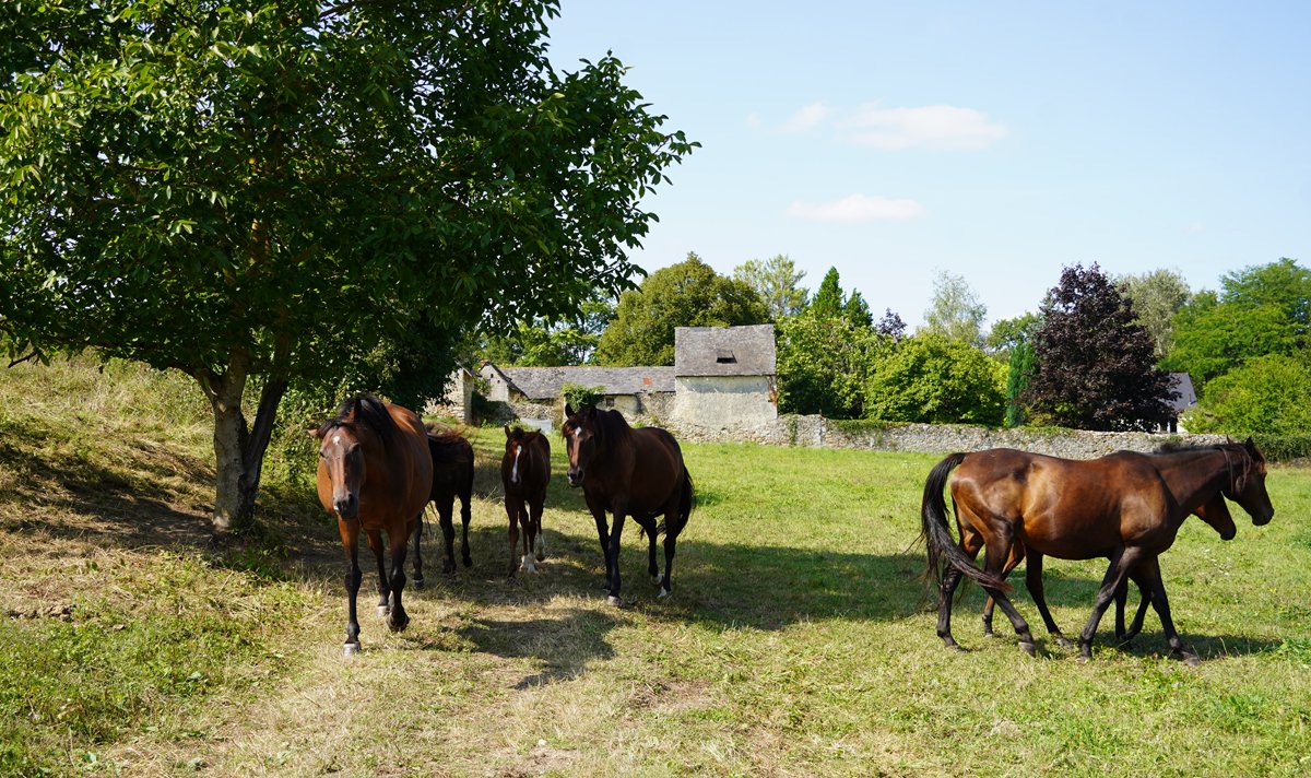 L'Ecurie des Mottes s'étend dont sur 145 ha de terres d'Anjou partagées entre, pour l'été, les vallées d'alluvions innondées tous les ans par les crues du Loir, et, pour l'hiver, les terres hautes plutôt sableuses. Les chevaux au repos profitent tous les automnes de vastes prairies communales de 400 hectares où ils se ressourcent en totale liberté pendant 2 mois.